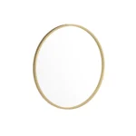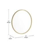 Modern 24 Inch Round Wall Mount Accent Mirror Slim Silhouette Gold Metal Frame Frame Thickness 0.78″ Real Silver Backed HD Glass Shatterproof Backing for Safety 3 Types of Mounting Hardware Included Wall mount mirror for use as a vanity, accent, entryway, or bathroom mirror