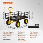 VEVOR Steel Garden Cart, Heavy Duty 1200 lbs Capacity, with Removable Mesh Sides to Convert into Flatbed, Utility Metal Wagon with 2-in-1 Handle and 13 in Tires, Perfect for Garden, Farm, Yard