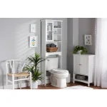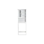 Keep your space organized with the superb design of the Campbell cabinet. Made in China, the Campbell is comprised of sturdy wood showcasing a brilliant white finish. Four open shelves create a convenient display for essential items, while two additional shelves behind the glass door provide secure storage. Requiring assembly, the Campbell is designed to be placed over a toilet, allowing for maximum use of bathroom space. A single silver tone metal knob completes the look, making the Campbell cabinet an exceptional addition to the modern home.