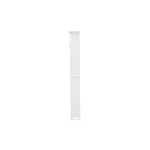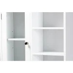 Constructed from engineered wood and glass White finish Four (4) open shelves Two (2) shelves behind the door Silver-tone metal door knob Assembly required